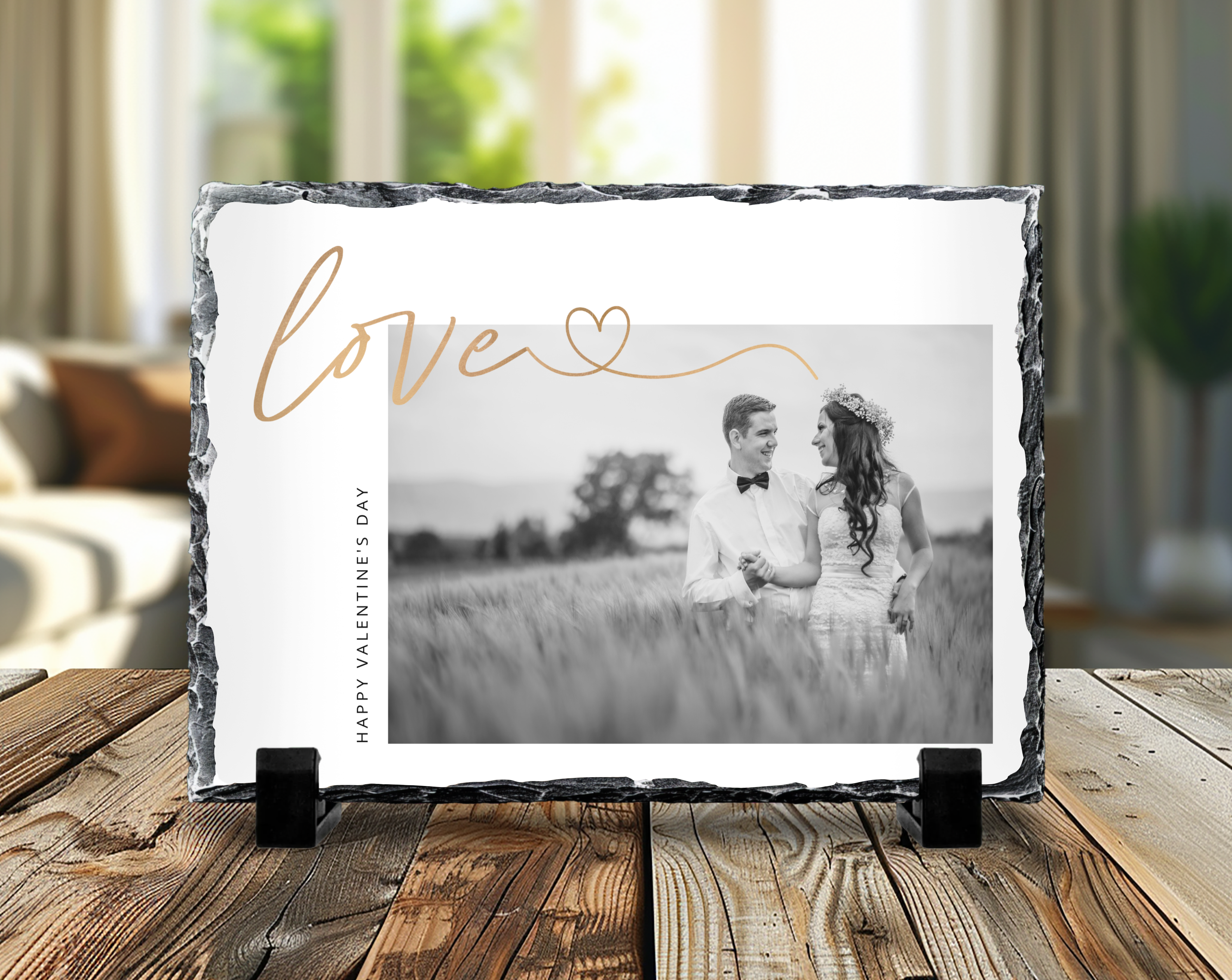 Personalised Image Photo Slate, Love, Happy Valentines Day, Gold Writting