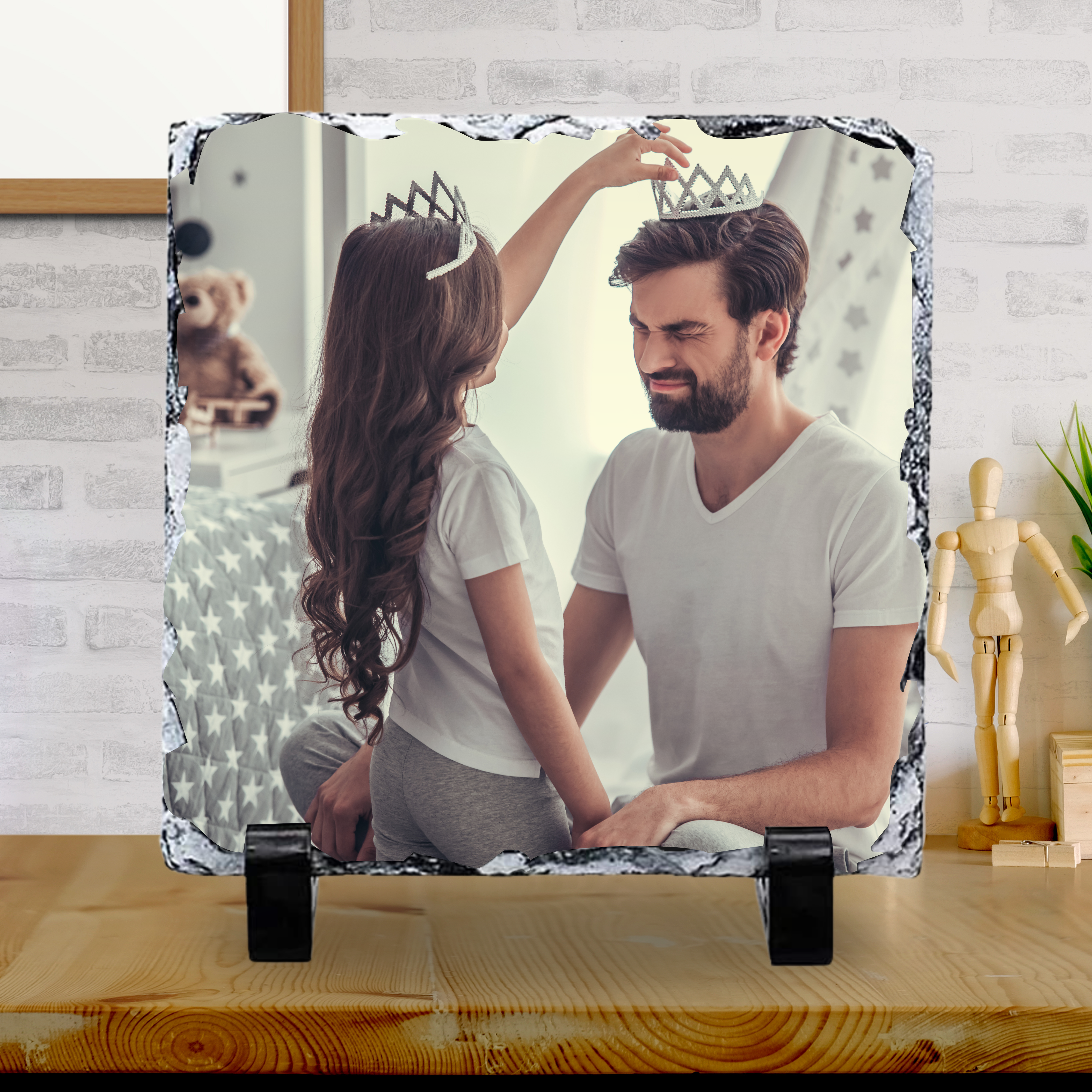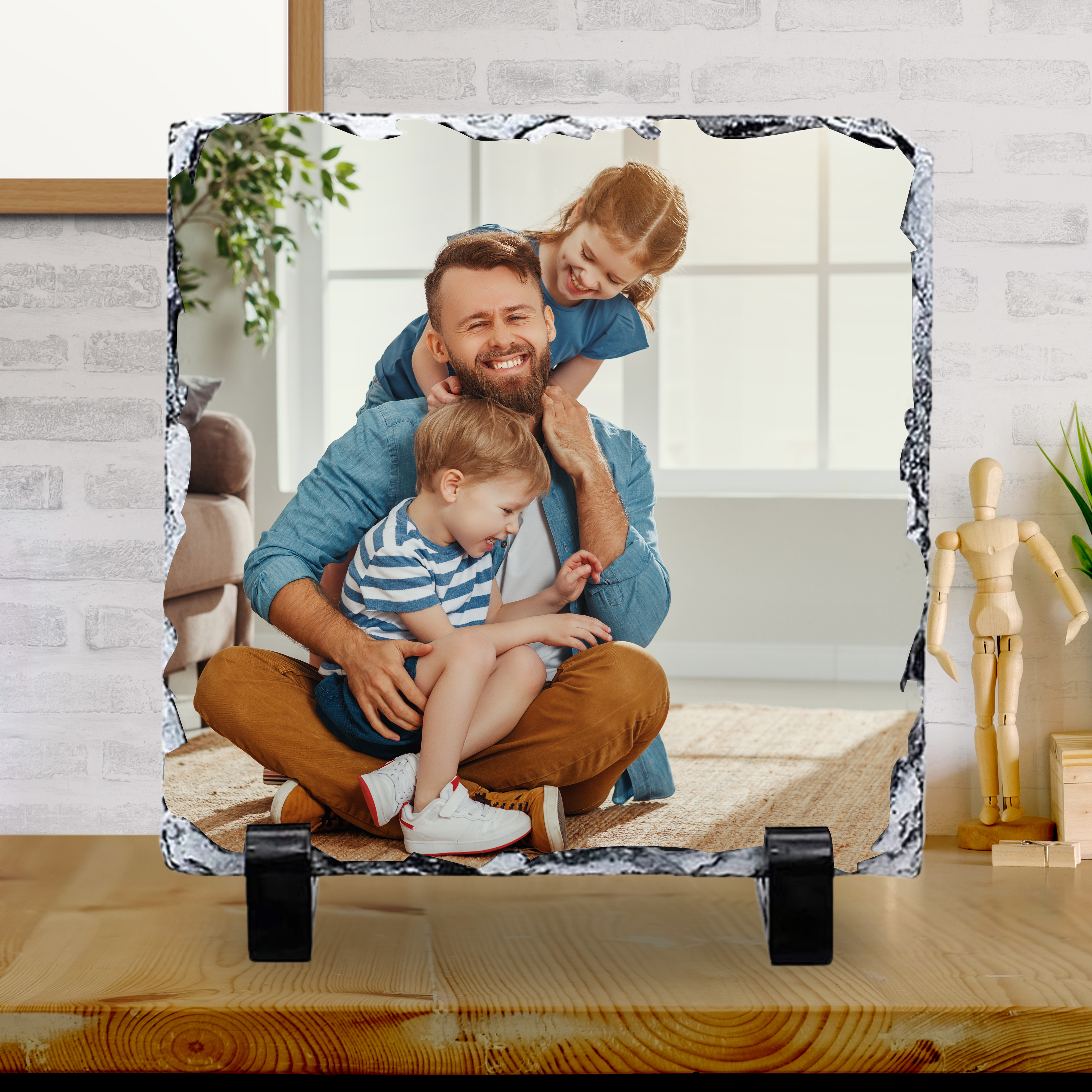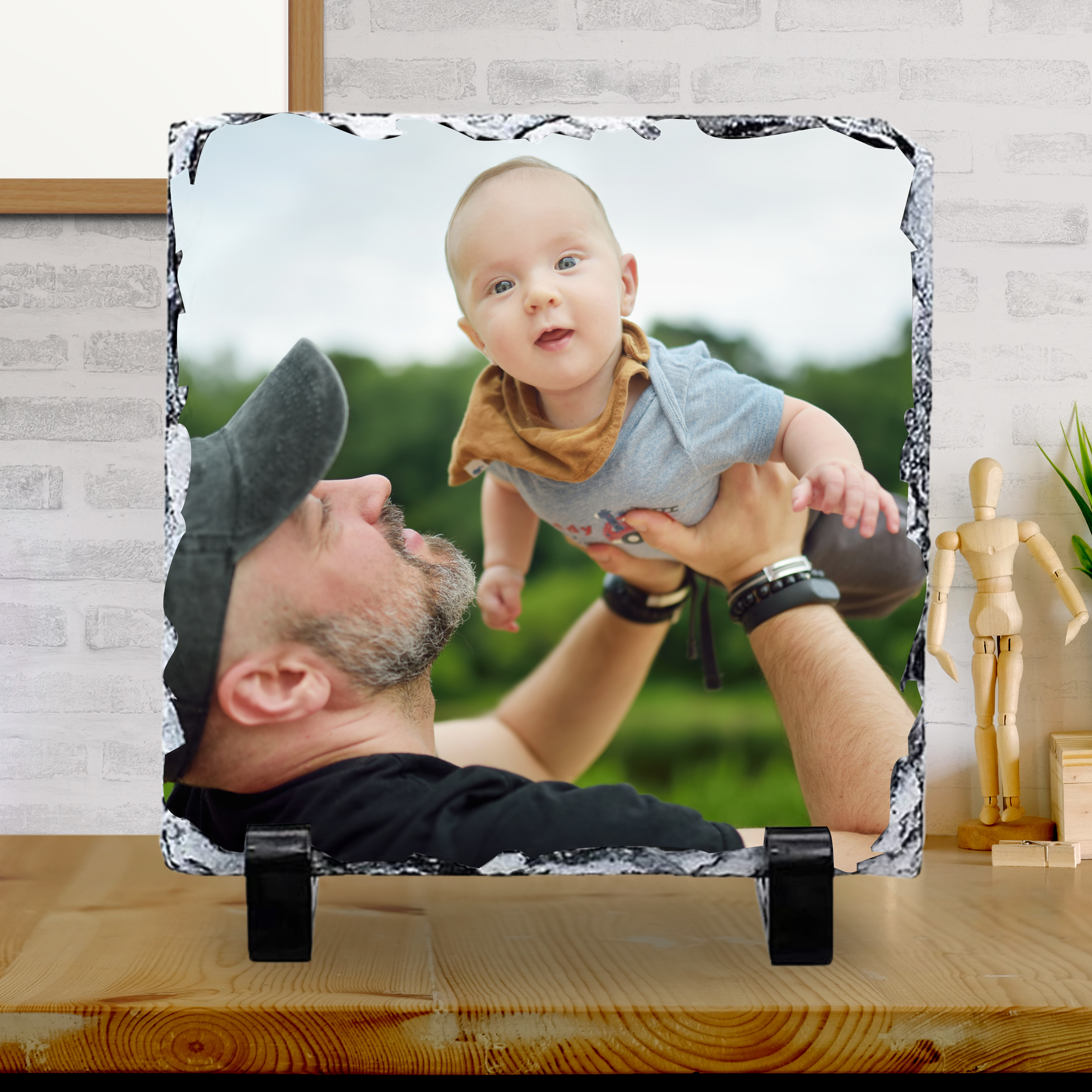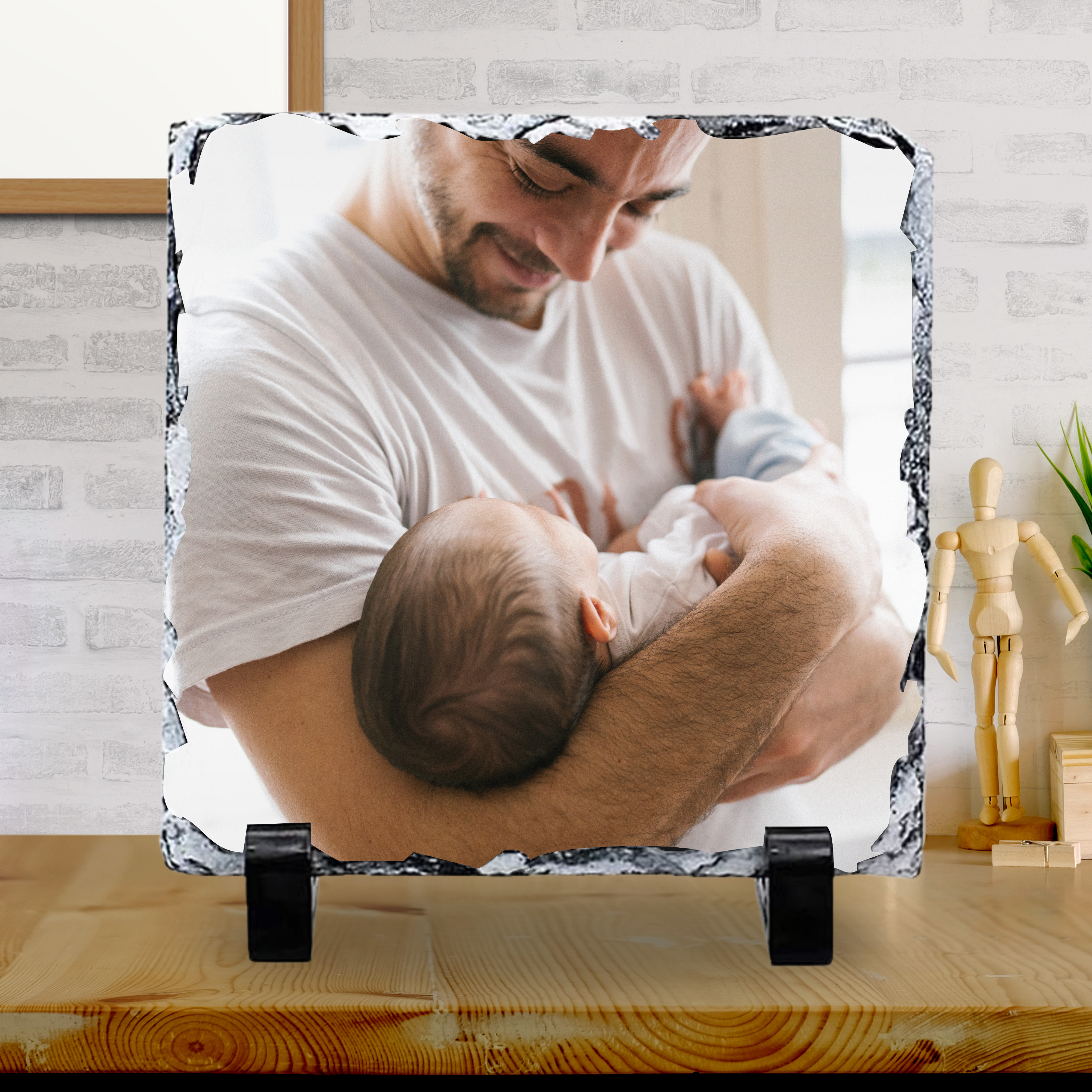 Crafted from high-quality slate, this photo rock slate is not only durable but also exudes a natural charm that will bring a smile to your dad's face. Whether displayed on a desk, shelf, or mantelpiece, it’s a heartfelt reminder of those special moments that make life meaningful.