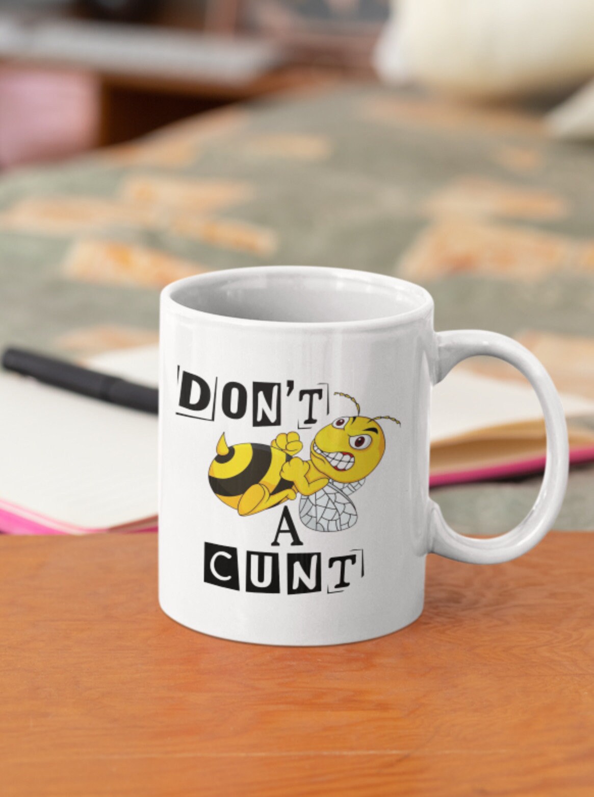 Elevate your daily routine with our stunning Don’t Bee a Cunt Mug. This is no ordinary Don’t Bee a Cunt Mug - it's a work of art that will transform your coffee or tea experience. -Ultra-high quality ceramic construction -Vibrant, scratch-proof interior and handle -Generous 110z capacity for your favorite beverages -Dishwasher-safe for easy cleaning -Packaged in a protective foam cover for safe delivery Start your day in style with our Don’t Bee a Cunt Mug. The rich, vivid colors and durable design make this the ultimate everyday essential. Whether you're sipping your morning brew or enjoying an afternoon pick-me-up, these Don’t Bee a Cunt Mug will elevate any moment. These Don’t Bee a Cunt Mug make a thoughtful gift for coffee and tea lovers, housewarming celebrations, or just because. Pair it with the matching coaster for a complete, coordinated set that's both functional and fashionable. Don’t Bee a Cunt Mug