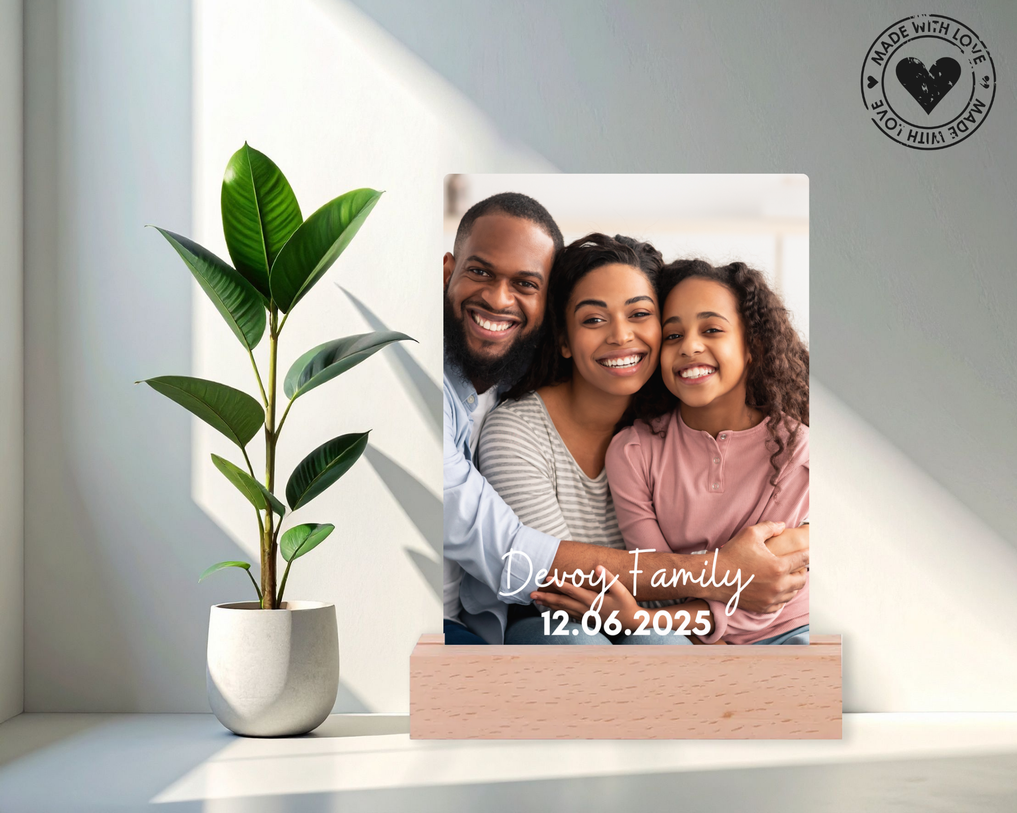 Lamp - Acrylic Photo Frame (14cm x 21.5cm) with LED Lamp - Rectangle Base - 1 Image with text