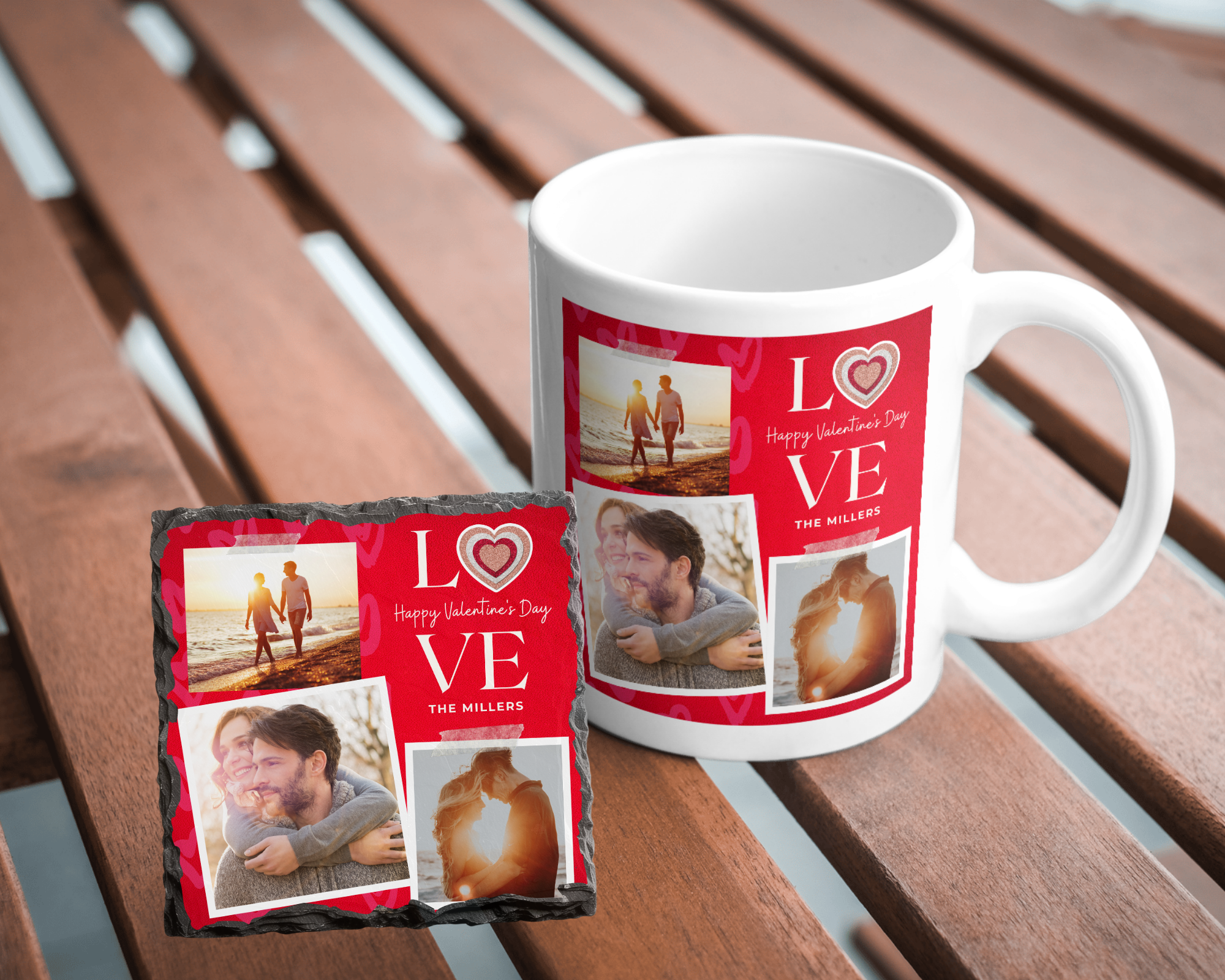 Enhance your Valentine's Day with our 11oz ceramic mug and 9cm Rock Slate Coaster featuring your own personalized photos and... Read more