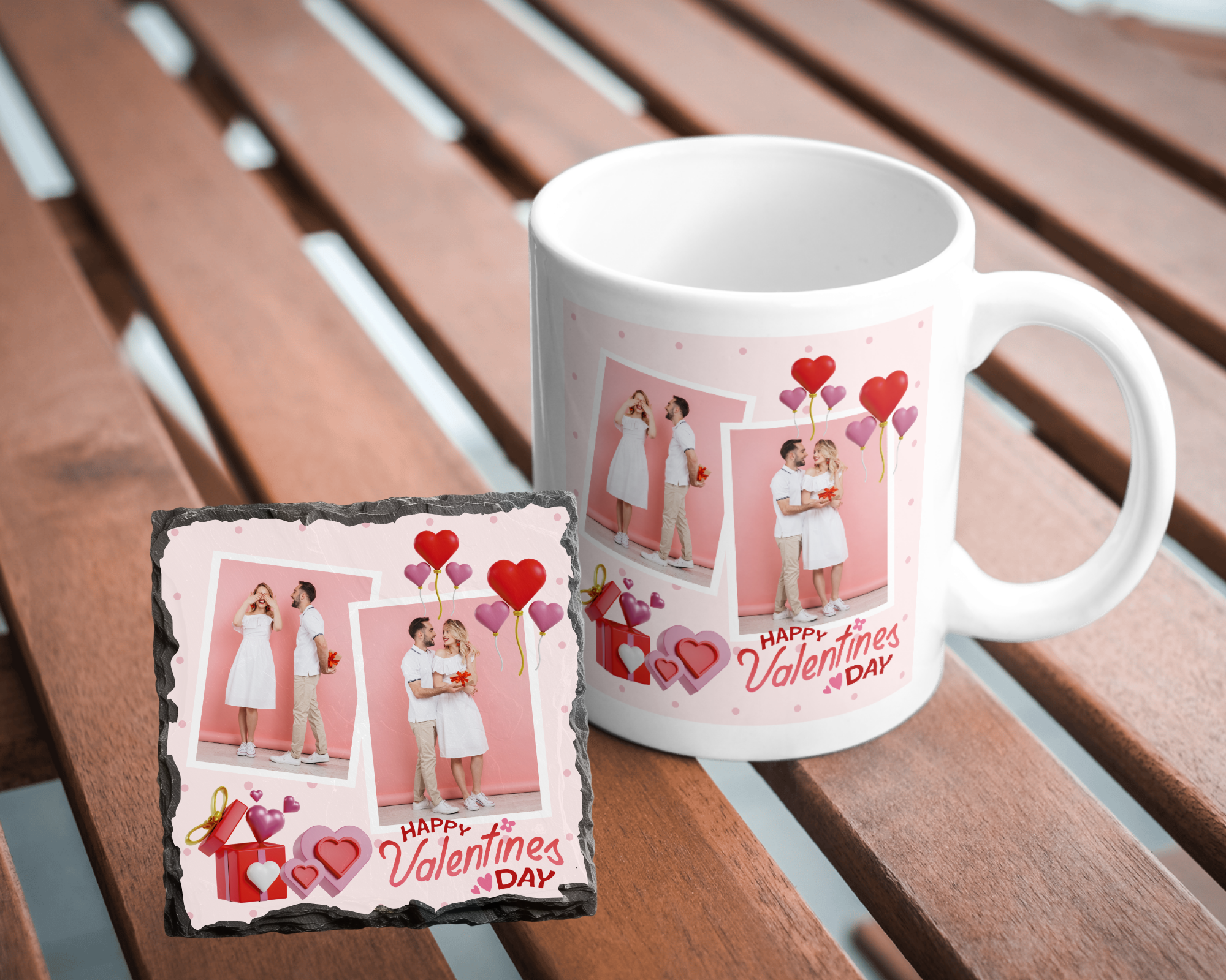 Enhance your Valentine's Day with our 11oz ceramic mug and 9cm Rock Slate Coaster featuring your own personalized photos and... Read more