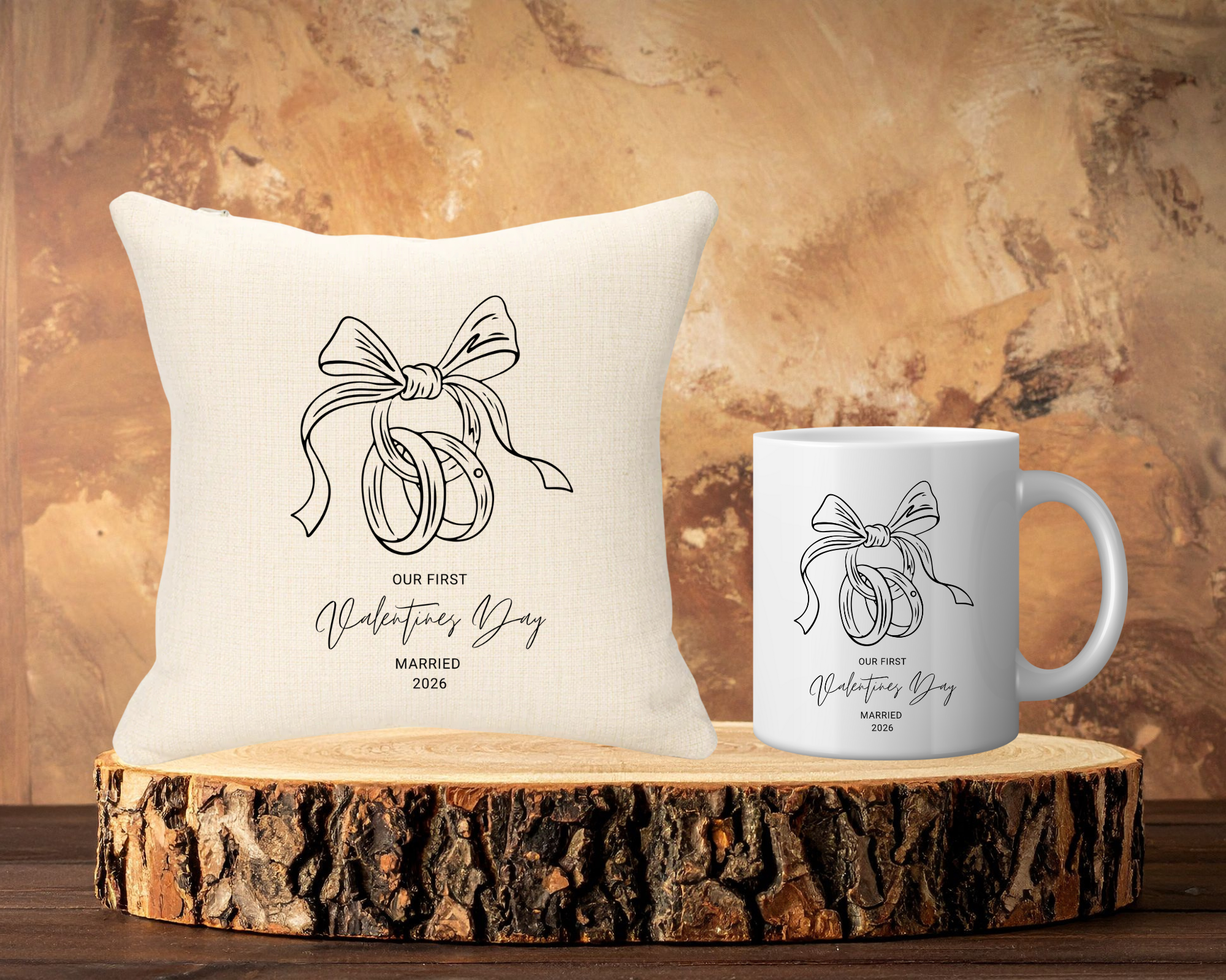 First Valentines Married 40x40cm Linen Cushion & Mug